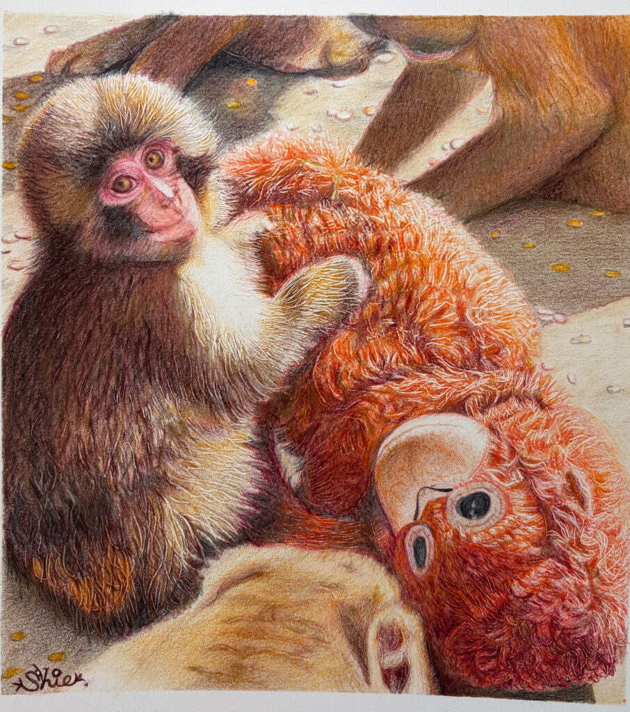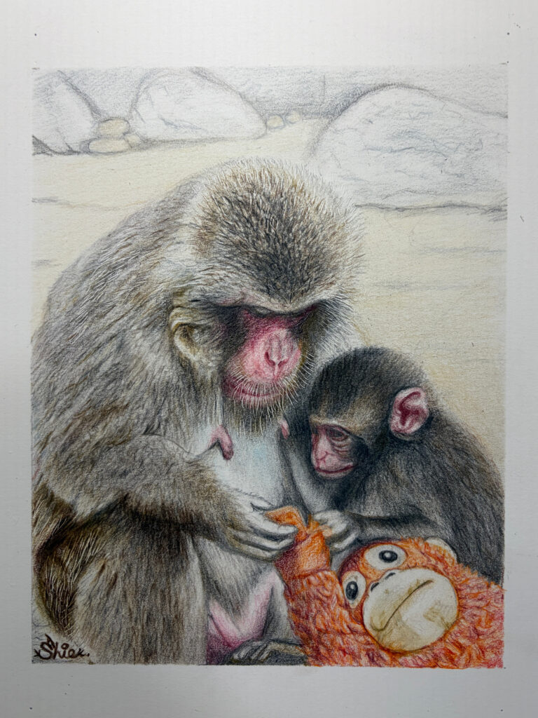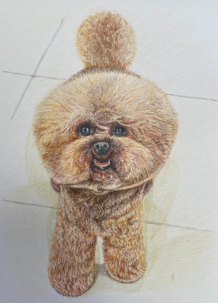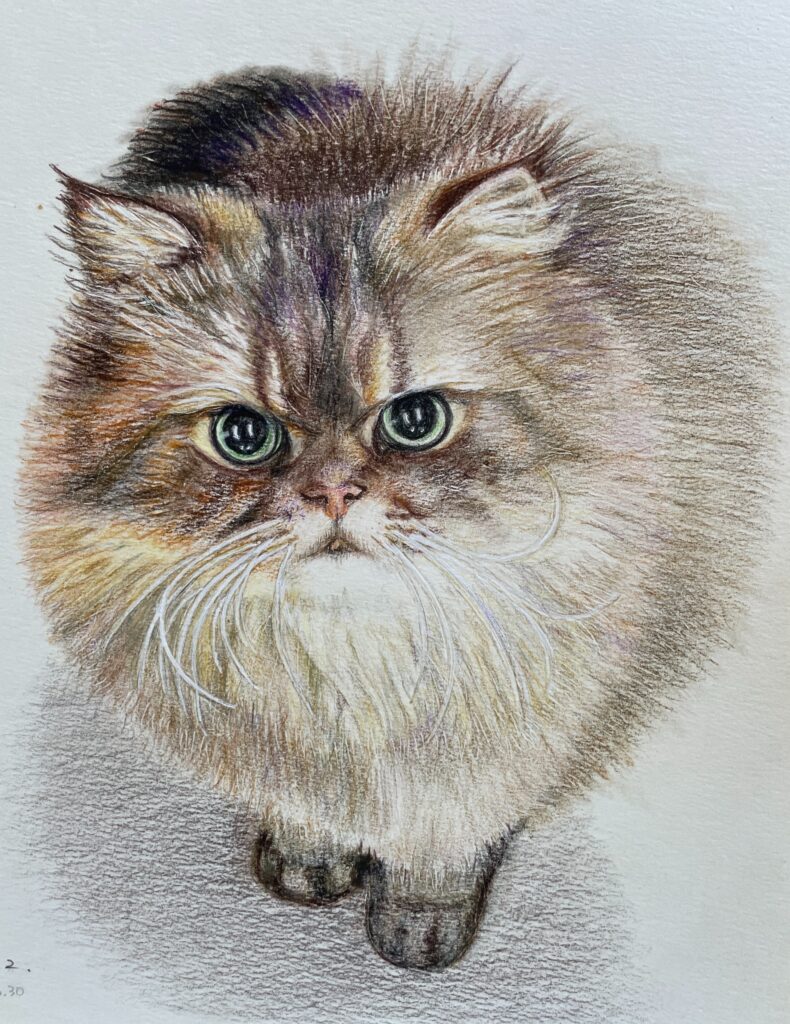写真の中の“フワモコ””つぶらな瞳”をそのまま色鉛筆で。手書きだから伝わる温かさがあります。。