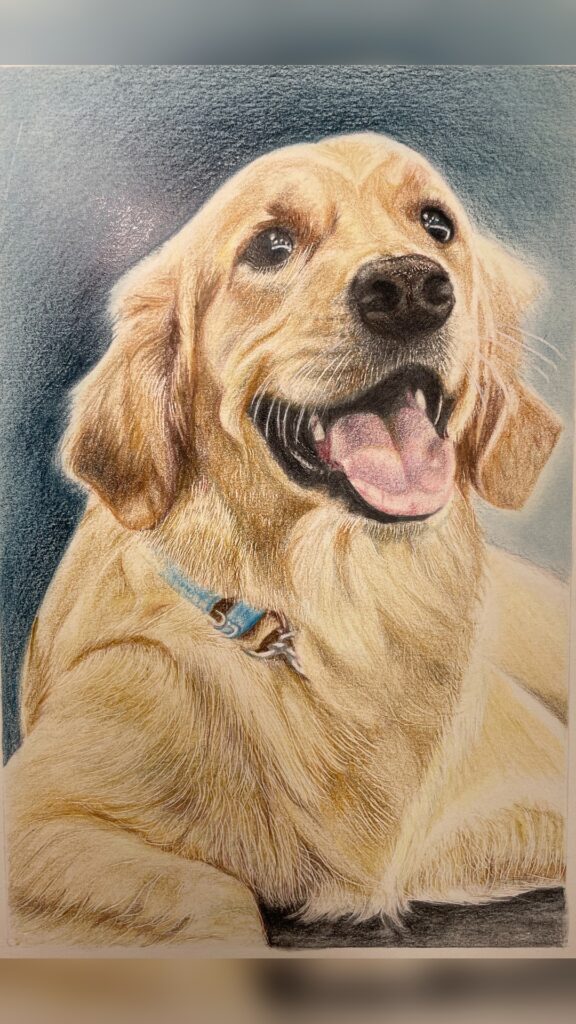 色鉛筆のやわらかな筆致で、ペットや大切な人の表情を丁寧に描きます。誕生日・記念日・虹の橋の思い出に。